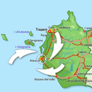 Marsala dista appena 17 chilometri dall’ultimo svincolo della A29 proveniente da Palermo.